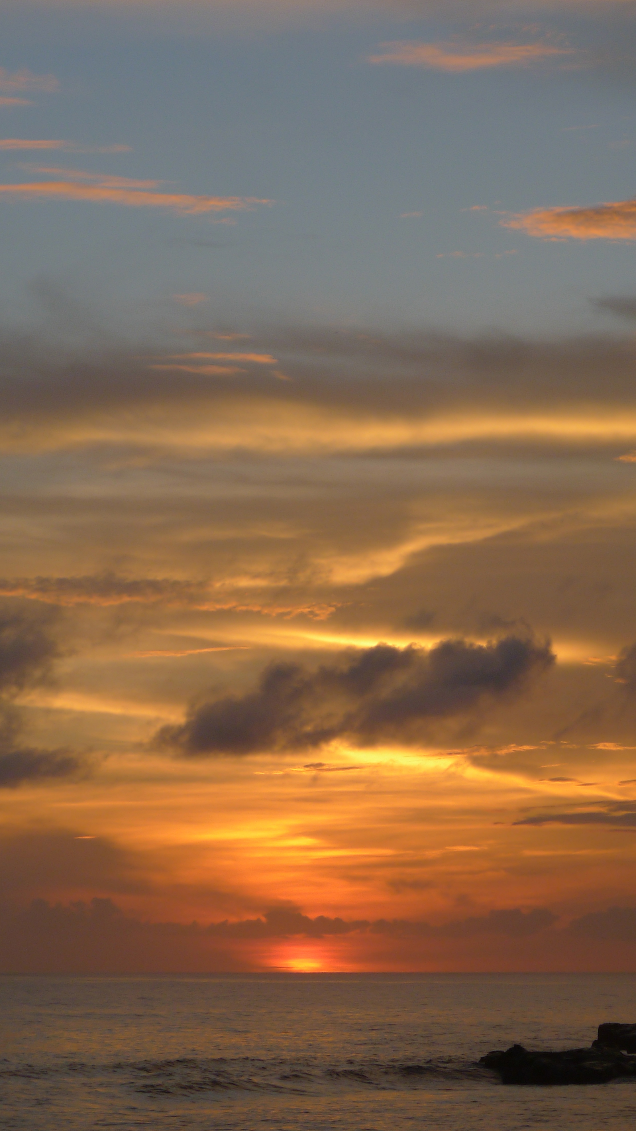 For the first time since I arrived in Costa Rica, I have the desire to walk out towards the sunset, towards the waves. I look up to the sky and take one step and then another. I know that I am still moving but I’ve stopped counting my steps. Suddenly pulled out of my stupor, I remember those words from the first day – stingrays! I turn around and see the beach off in the distance, what feels like a half mile away. “A whole gaggle of stingrays could be hiding between me and that beach,” I think. No longer afraid of a mortal wound but still anxious to keep my feet without holes, I take a deep breath and slowly begin to shuffle my way back home.