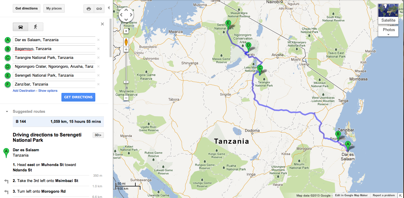 Note that we took the ferry down the coast from Dakar to Ziguinchor, but if you were to drive in a sept-place, this would be the 9hr route.